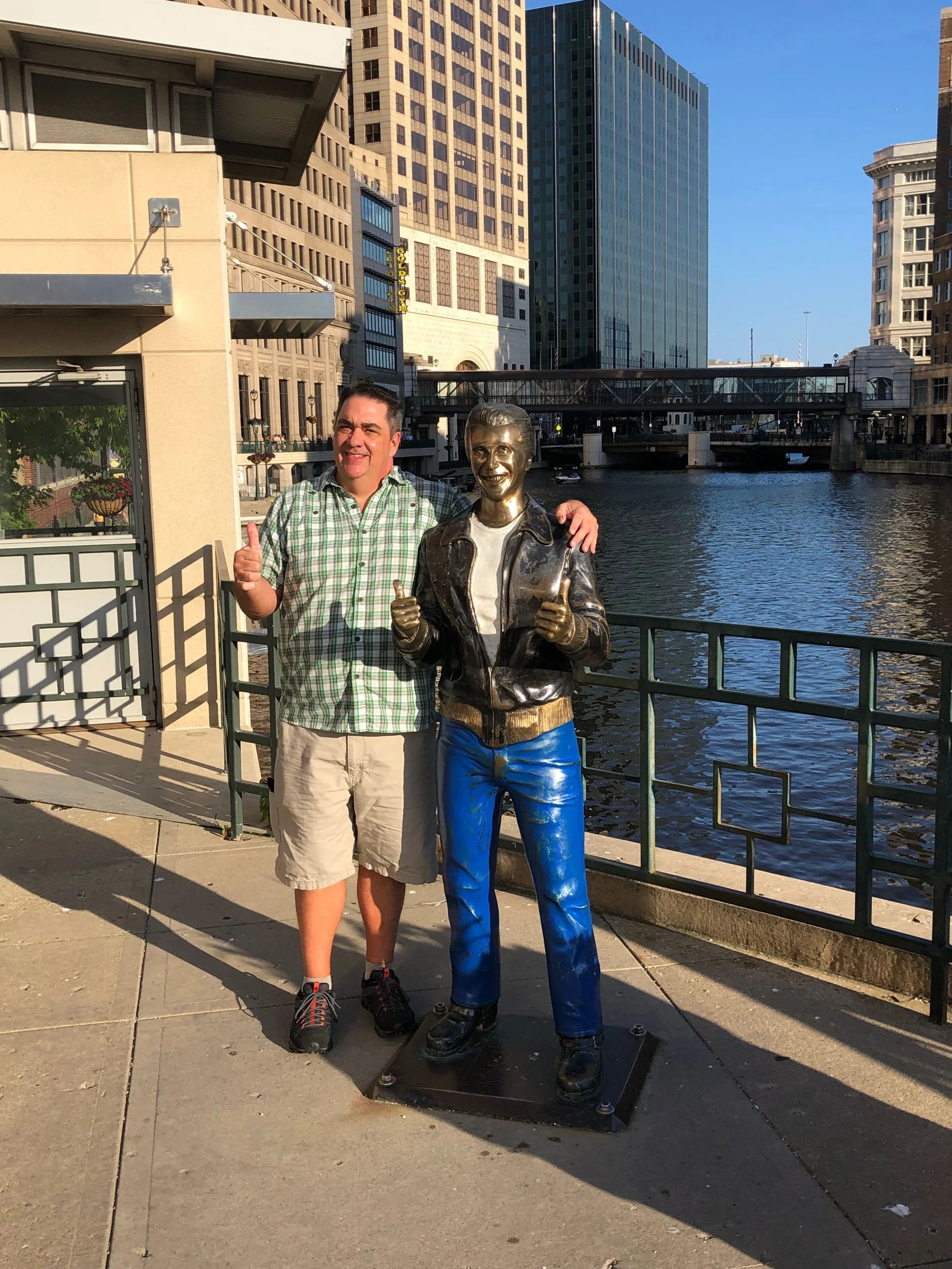 Once we got to Milwaukee, Travis’ Avis preferred status really kicked in and they gave us a car that was filthy, had a bag of trash in the front seat, and had no gas in it. Travel is so glamorous!