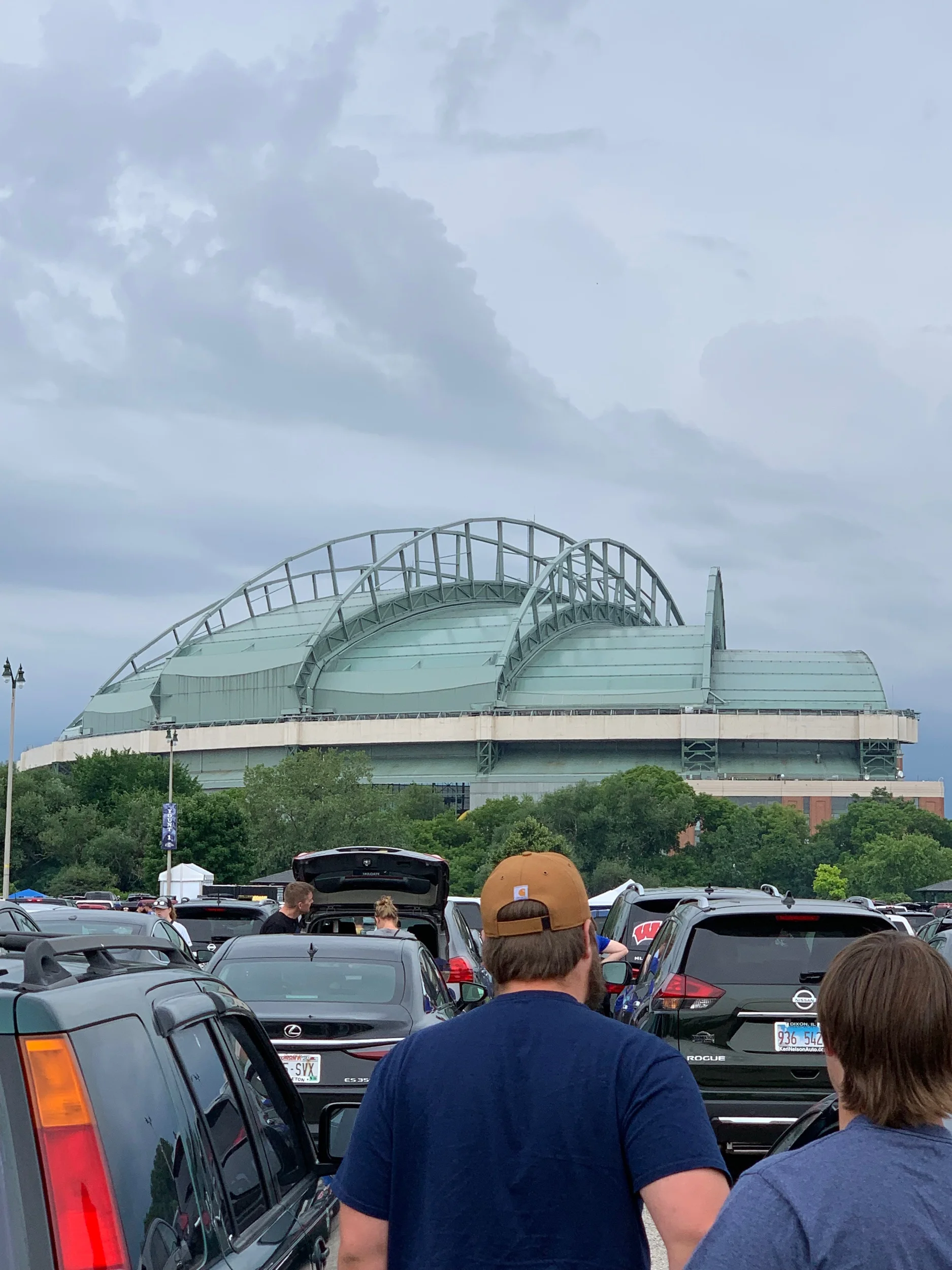 After breakfast, we head to Millar Park for a Brewers/Pirates game. We don’t care about either team, but it’s always fun to catch a game in a new ball field. First thing we notice is how many people tailgate once they get to the parking lot. This isn’t people who come early to tailgate. This is people who arrive 30 minutes before the game, park, quickly grab games, tables, chairs, food, and drinks out of their car, just so they can tailgate for 10-15 minutes. We also saw a game that looked sort of like cornhole, but played with darts!