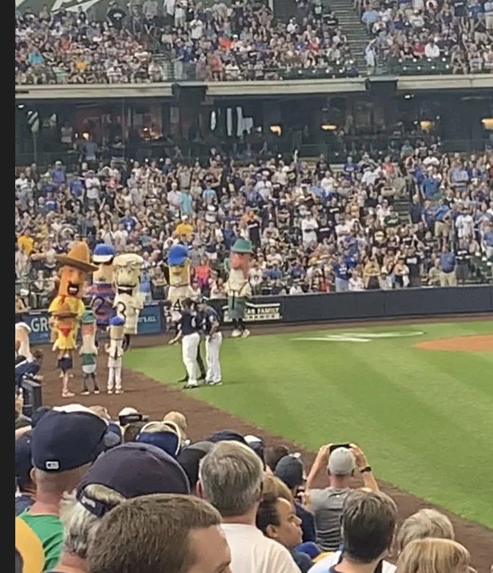 They have sausage races at the game. Chorizo won tonight (he’s the one with the sombrero).