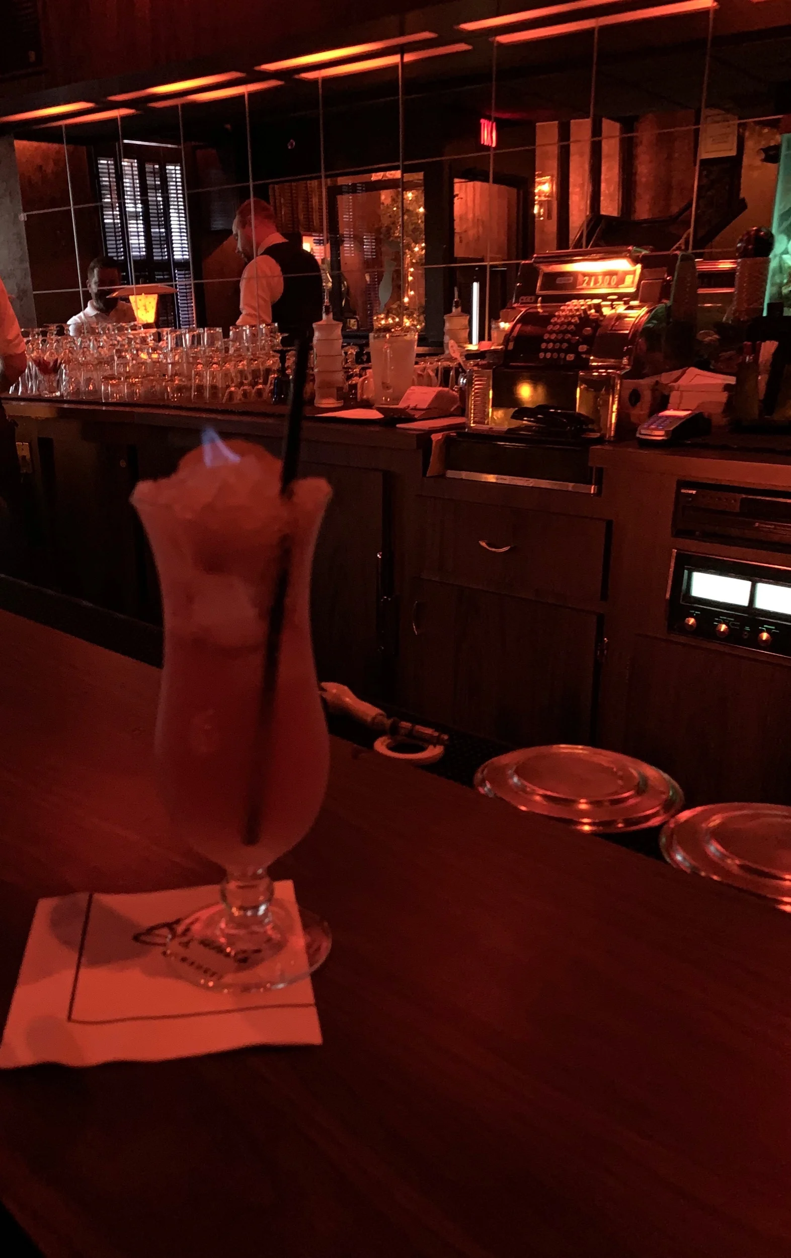 We’ve come to Bryant’s cocktail lounge, which has been around since 1938. It’s an old style lounge, very dark, velvety, with jazz playing from a McIntosh sound system (Travis says its at least a $10K system. They don’t have a menu, but offer about 450 different cocktails. You give the bartender details of what types of things you like, things you don’t like, and they make something for you (or you can ask for something specific, but where’s the fun in that?).